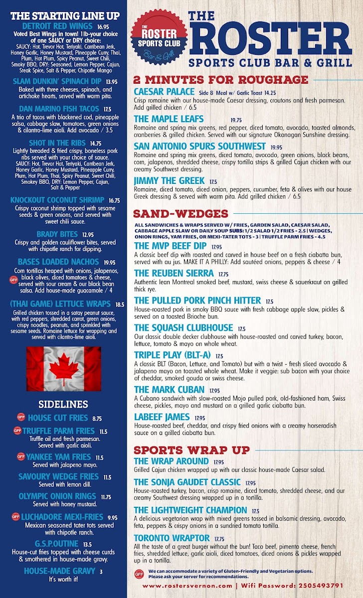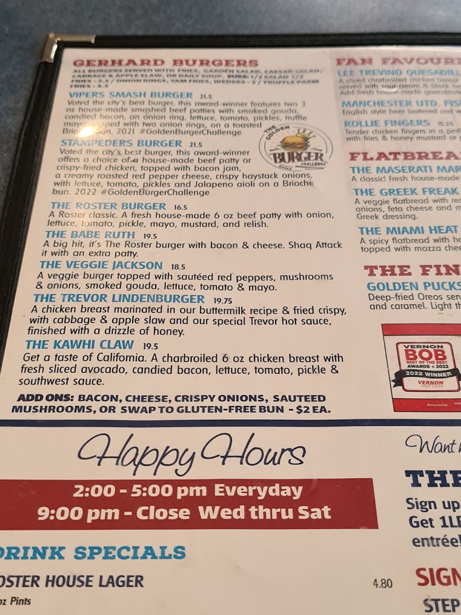 Welcome to The Roster Sports Club Bar & Grill, a must-visit destination in Vernon, BC. This vibrant spot combines a love for sports with a fantastic dining experience. The highlight of their menu is undoubtedly the acclaimed Vipers Smash Burger, often lauded as the best in town. Juicy patties are paired with crunchy onion rings, pickles, and a signature sauce, making each bite a delight for burger lovers.